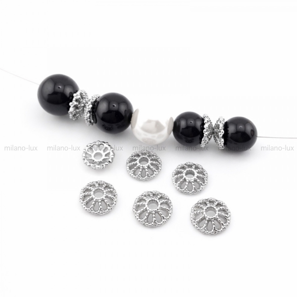 Шапочки для бусины, размер 8мм, глубина 2,6мм, отверстие 1,7мм. Изготовлены из латуни с покрытием Платина.