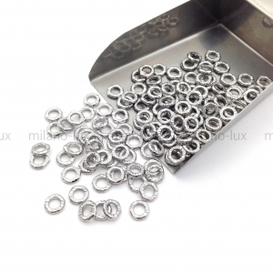 Бусина спейсер из латуни с покрытием Платина, форма кольца с насечками. Размер 6мм, толщина 1,3мм, внутренний диаметр 3,3мм