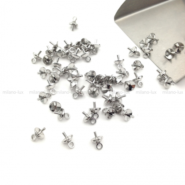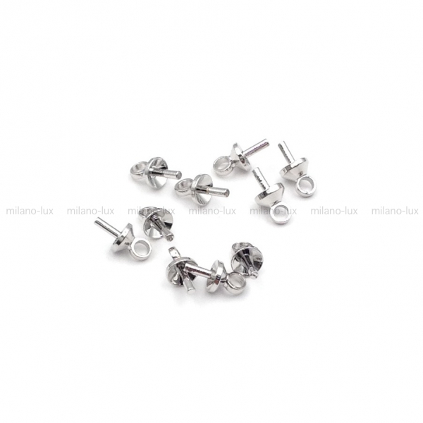 Бейл для вклейки из Латуни с покрытием Платина, размер юбочки 5мм, петля 2,9мм, пин 2,5*1мм