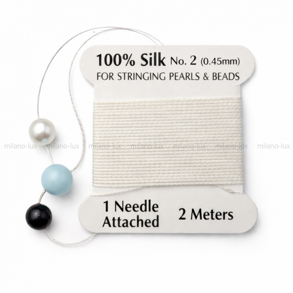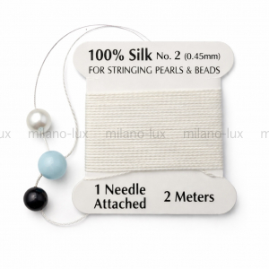 Нитка с иглой для упрощения сборки Украшений из Жемчуга и камней, прочная и красивая. Толщина нити 0,45мм, состав: 100% шёлк, Китай.