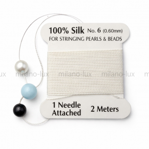 Нитка с иглой для упрощения сборки Украшений из Жемчуга и камней, прочная и красивая. Толщина нити 0,60мм, состав: 100% шёлк, Китай.
