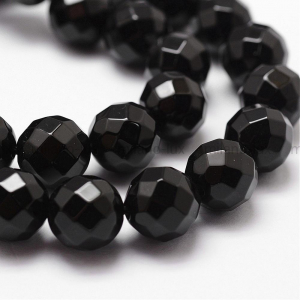 Агат гранёный Чёрный, шар 6мм; нить 38см