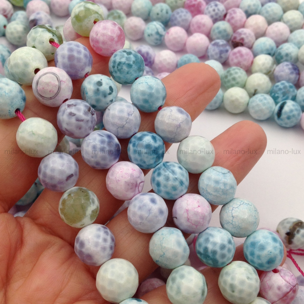 Агат Конфетти, шар гранёный 10.5мм; нить 35см