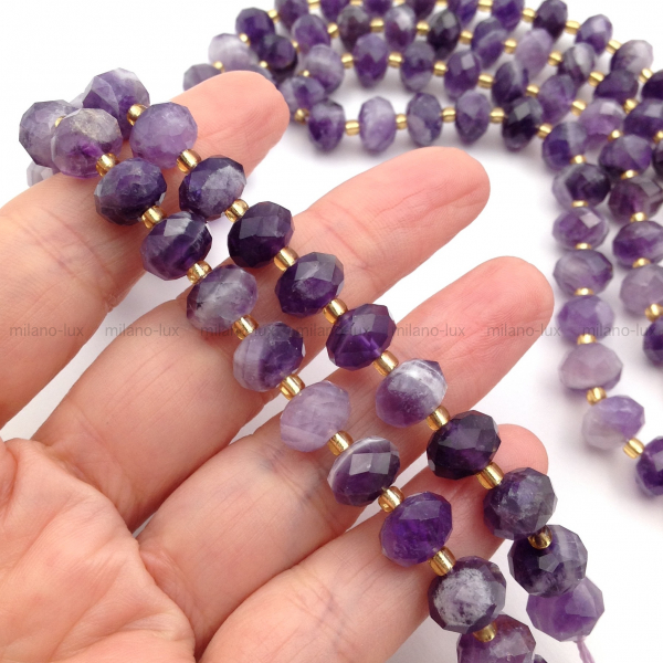 Натуральный Аметист высокого качества, форма рондель в ювелирной огранке, размер примерно 9,6*6,9мм (+-0,1мм), отверстие 0,9мм