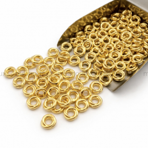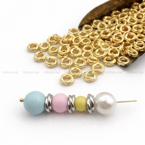 Бусина в виде 3х переплетённых колечек, изготовлена из латуни с покрытием Золото 18К. Размер 8*3мм, отверстие 3мм