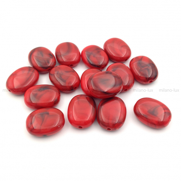 Бусина Акрил, Овальная 18*14мм; красный с чёрным