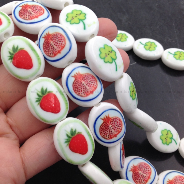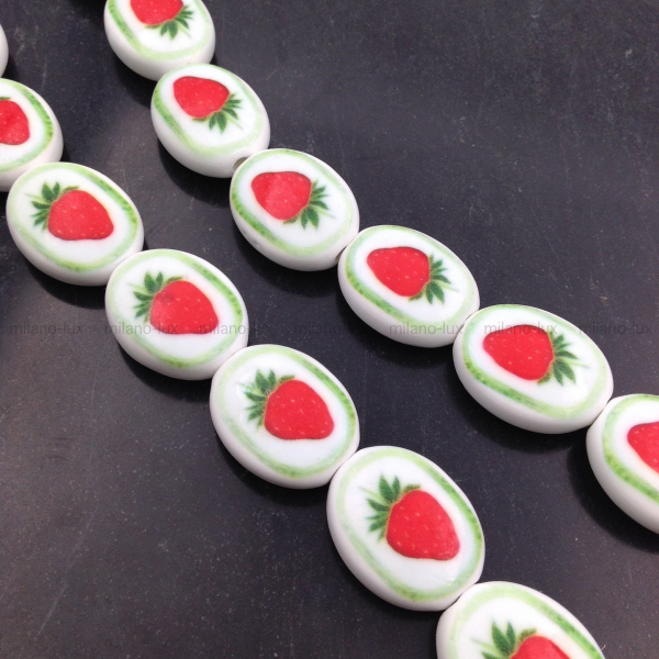 Бусина Керамическая овальная Клубника, 21*17мм
