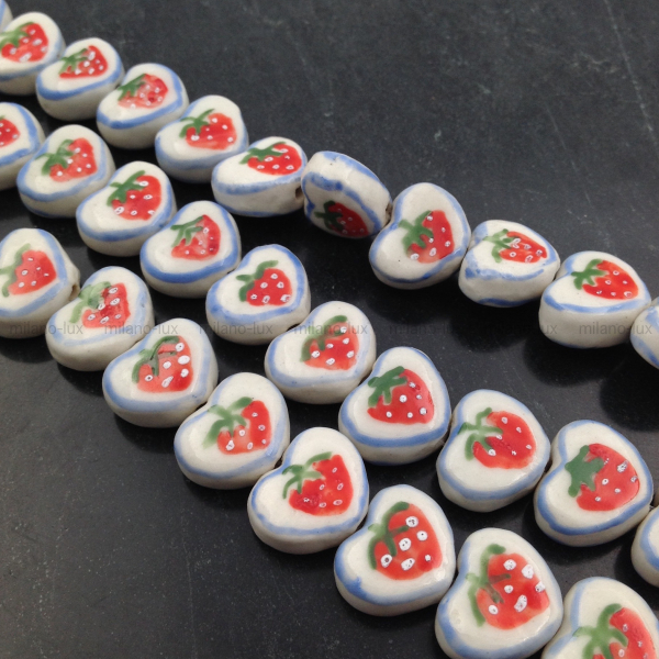 Бусина Керамическая Сердце Клубника, 14*12мм
