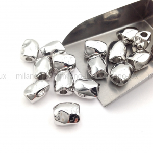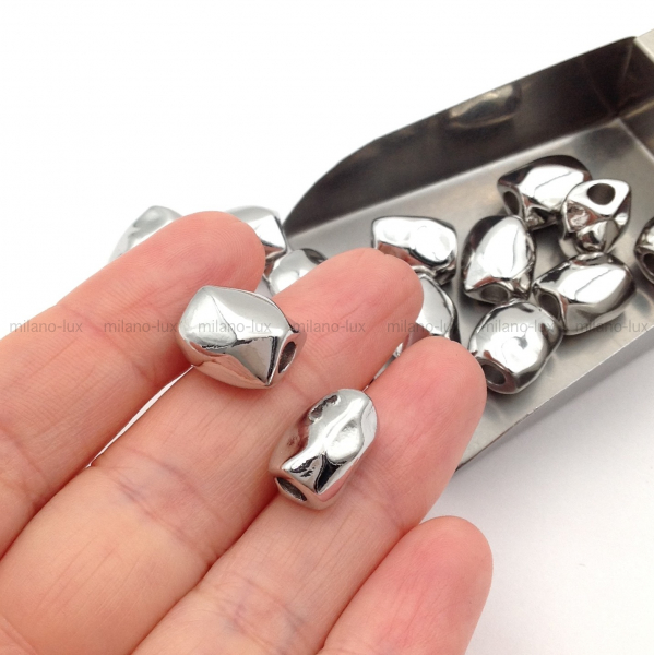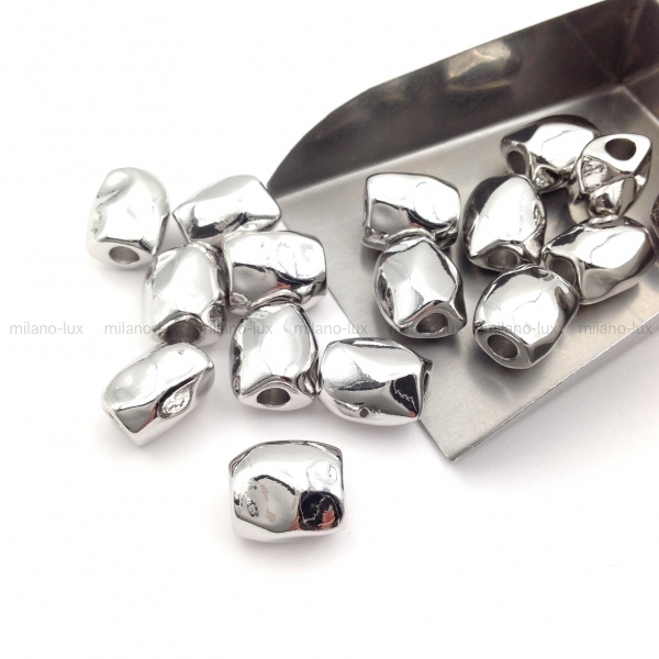 Бусина из латуни с покрытием Платина, в форме мятого бочонка, размер 13*11мм, отверстие 3,8мм