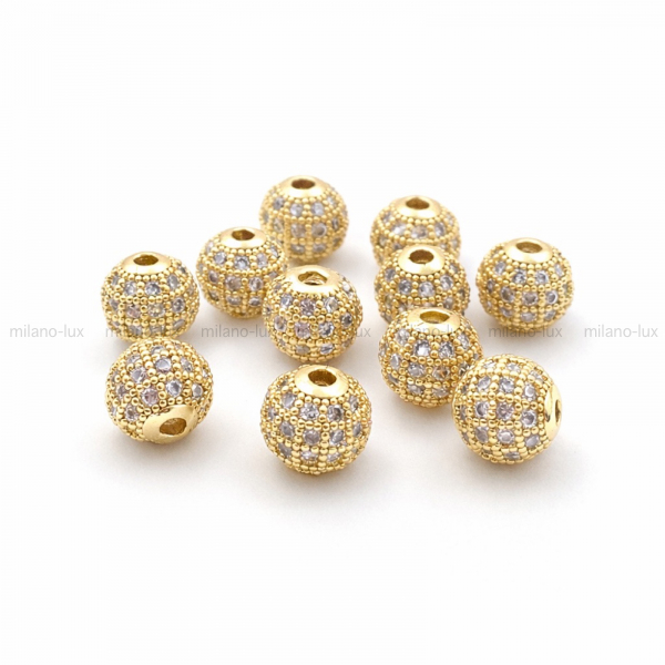 Бусина для украшений в форме шар, Размер 8мм, отверстие 1,5мм. Фурнитура премиального качества, изготовлена из латуни с позолотой 18К, инкрустировано микро фианитами. Лучшая фурнитура ювелирного качества для создания бижутерии своими руками, актуальные модели по выгодной цене.