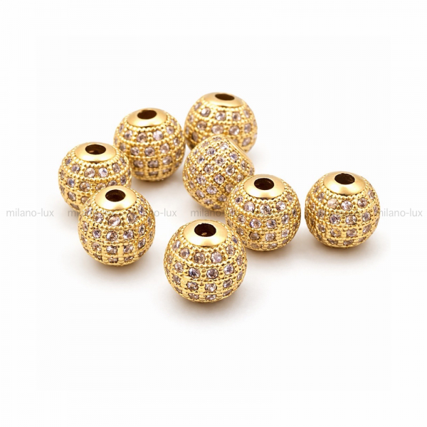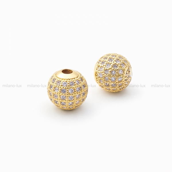 Бусина для украшений в форме шар, Размер 10мм, отверстие 1,5мм. Фурнитура премиального качества, изготовлена из латуни с позолотой 18К, инкрустировано микро фианитами. Лучшая фурнитура ювелирного качества для создания бижутерии своими руками, актуальные модели по выгодной цене.