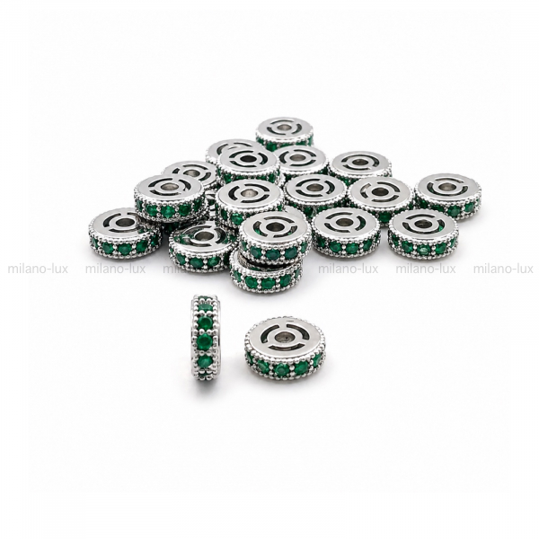 Бусина Спейсер с Изумрудными фианитами 5.7мм; цвет платина