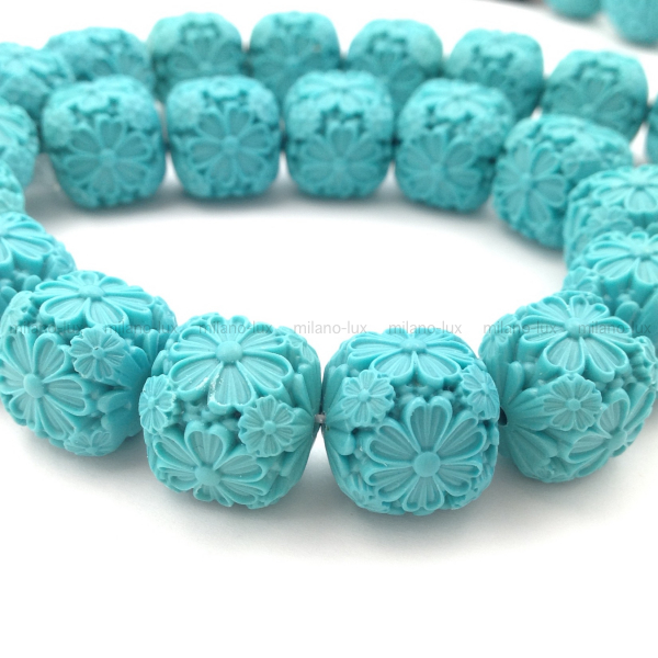 Бусина Цветочный Куб из прессованного Говлита, 15мм