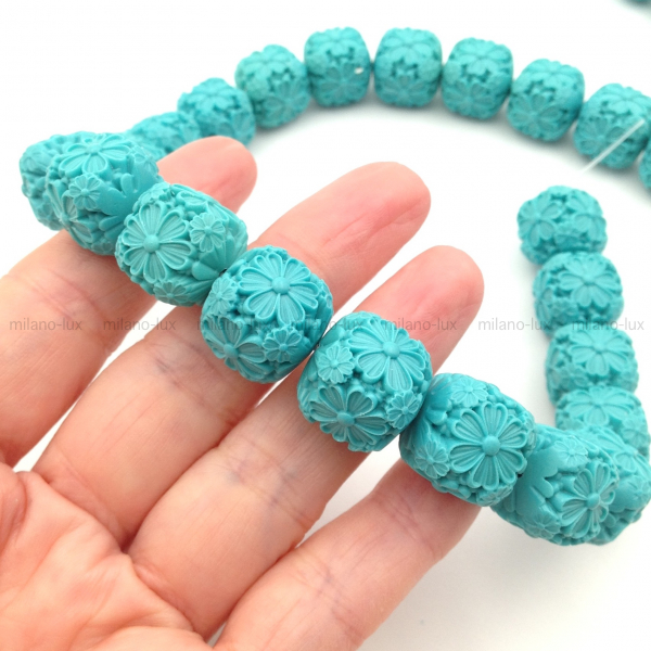 Бусины из натурального перетёртого говлита, прессованного и тонированного. Размер 15*15,6мм, отверстие 1мм