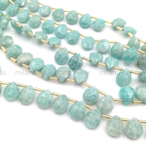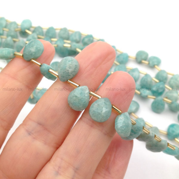 Бусина из натурального Амазонита в высоком качестве, микроогранка, размер примерно 10*8мм (+-0,2мм), отверстие боковое в верхней части бусины
