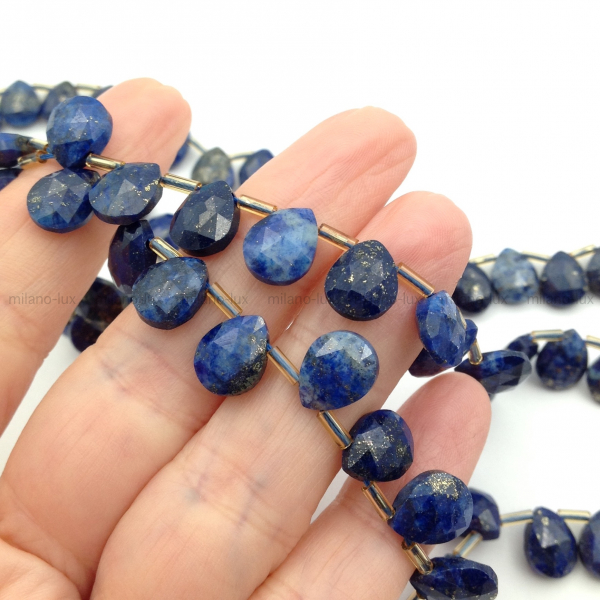 Бусина из натурального Лазурита в высоком качестве, микроогранка, размер примерно 10*8мм (+-0,2мм), отверстие боковое в верхней части бусины