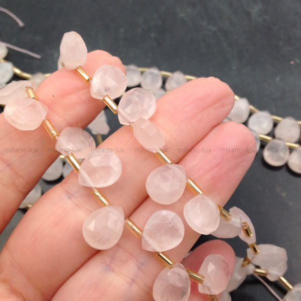 Бусина из натурального Розового Кварца в высоком качестве, микроогранка, размер примерно 10*8мм (+-0,2мм), отверстие боковое в верхней части бусины