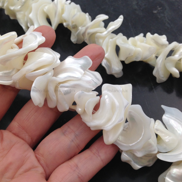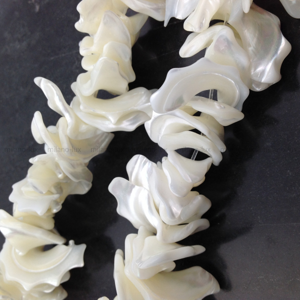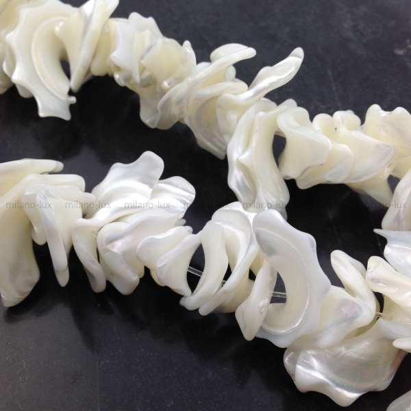 Бусины из натуральной Раковины, Перламутр; нить 38см
