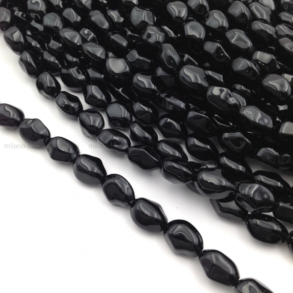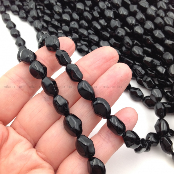Бусины Майорка, форма камень 11*9мм, Чёрный цвет; нить 39см