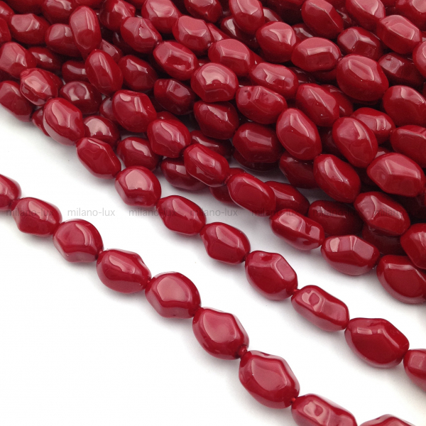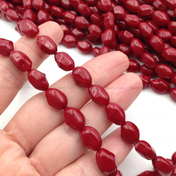 Бусины Майорка, форма камень 11*9мм, глубокий Красный цвет; нить 39см