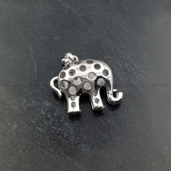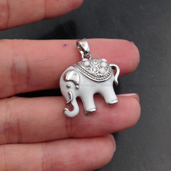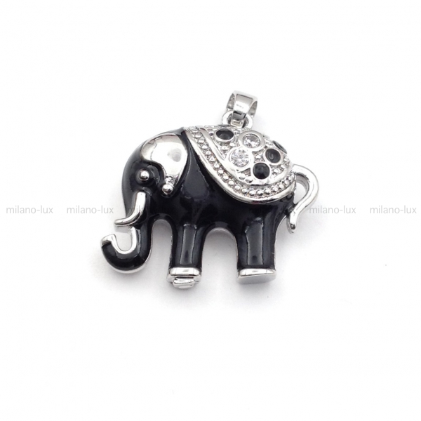 → ДЕФЕКТ!Подвеска Слон с Чёрной эмалью и фианитами, 23мм; цвет платина