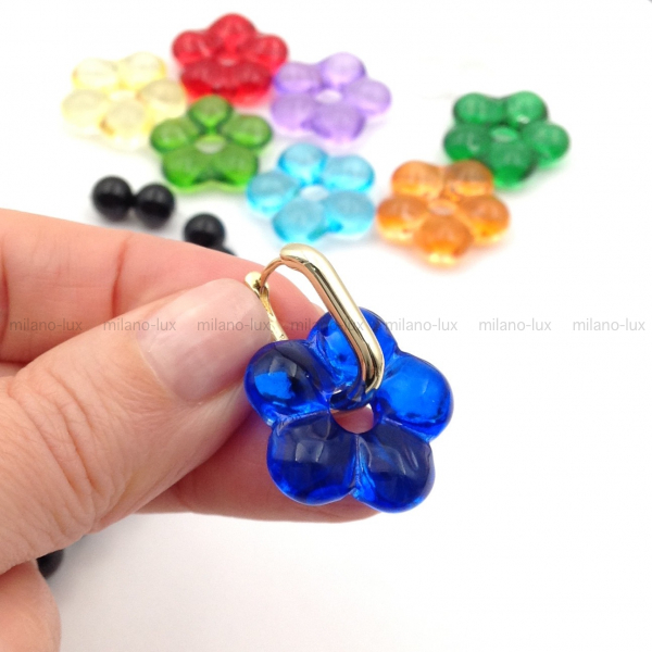 Элемент из стекла в форме цветка, размер 24мм, центральное отверстие 5мм, сквозного отверстия нет, толщина элемента 7мм.