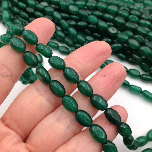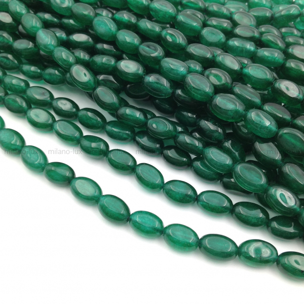 → Халцедон "галька" 10*5мм, цвет Зелёный; нить 38см