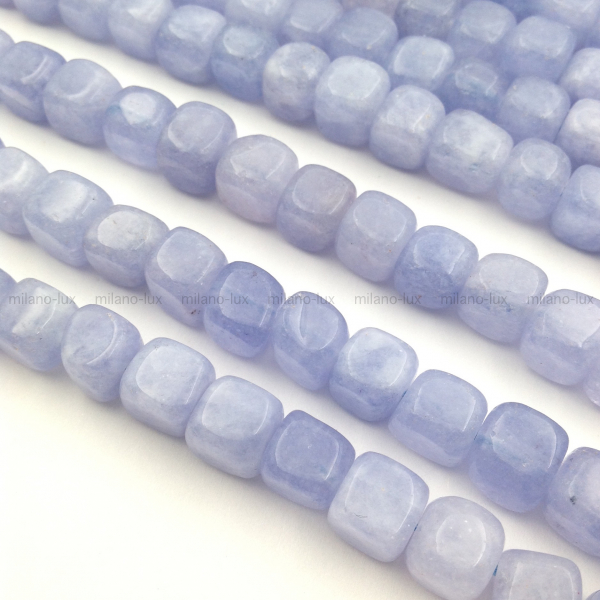 Бусины из натурального халцедона, тонированного, форма кубики свободной формы, гладкие, размер 7,5-8мм, отверстие 1мм. На некоторых бусинах присутсвуют каверны, неровности, включения и тёмные точки - это не является браком натурального камня.