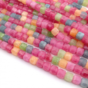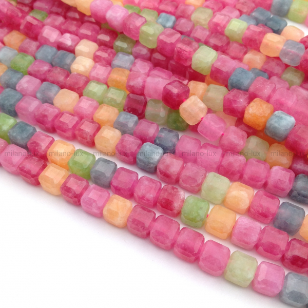 Халцедон Куб гранёный Турмалиновый микс, 6.5-7мм; нить 37см