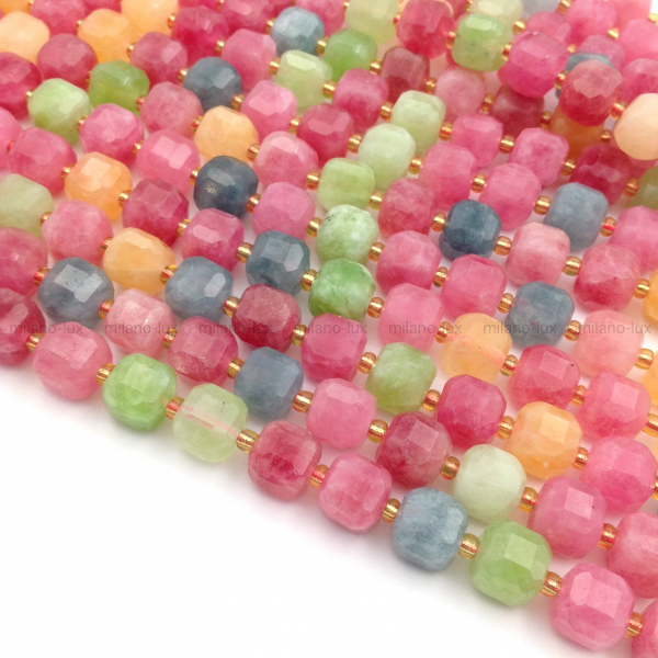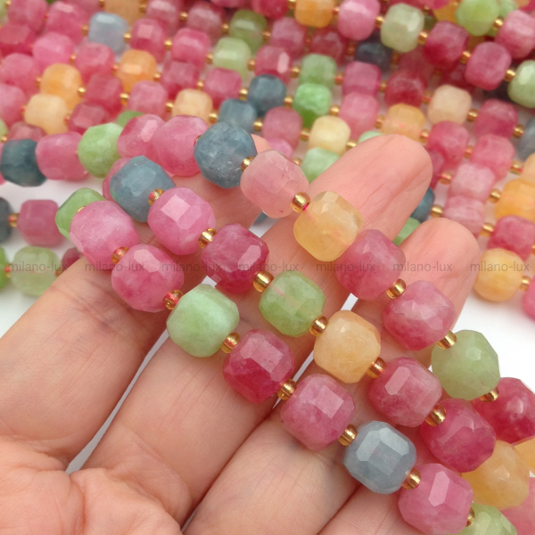 → Халцедон Куб гранёный Турмалиновый микс, 8.5мм; нить 38см