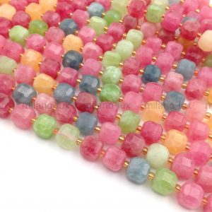 Халцедон Куб гранёный Турмалиновый микс, 8.5мм; нить 38см