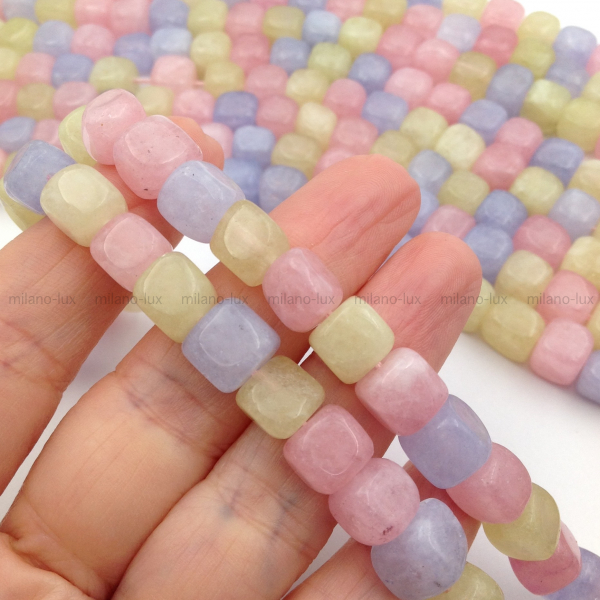 Халцедон Куб нежный микс, 8мм; нить 38см