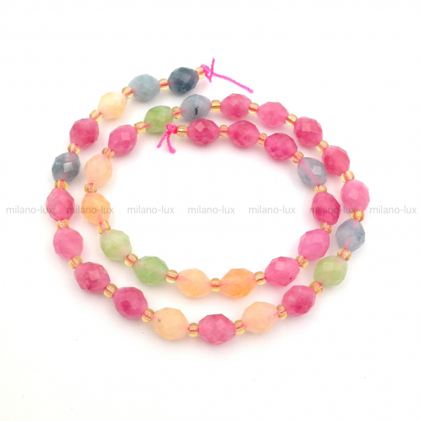 Бусины из натурального халцедона, тонированного, форма рис гранёная, размер 7*8мм (+-0,2мм), отверстие 0,8мм