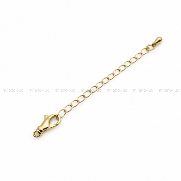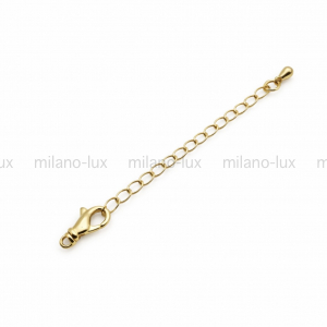 Замочек карабин из латуни, покрытие Золото 18К, с удлинительной цепочкой и утяжелителем, размер карабина 12мм, длина удлинительной цепочки 50мм