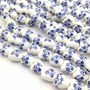 → Керамическая бусина Сердце 12мм, Синие цветы