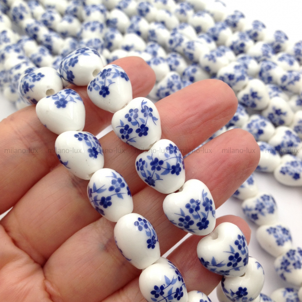 Керамические бусины в форме сердце, размер примерно 12мм, отверстие 2-3мм