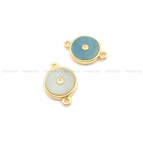 Коннектор Амазонит Натуральный в латуни с фианитом; цвет золото