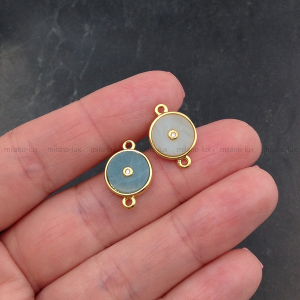 → Коннектор Амазонит Натуральный в латуни с фианитом; цвет золото