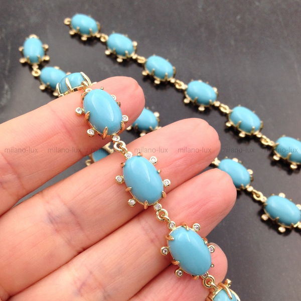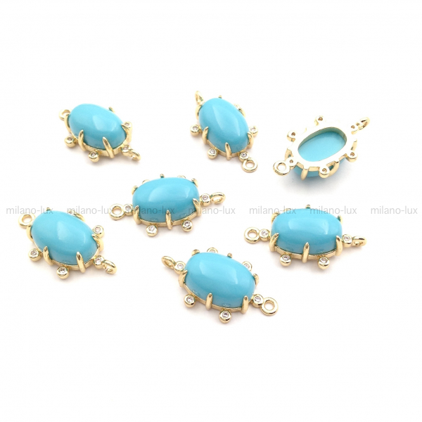 Коннектор Овал Бирюзовая Майорка, 21*11мм; 1 штука