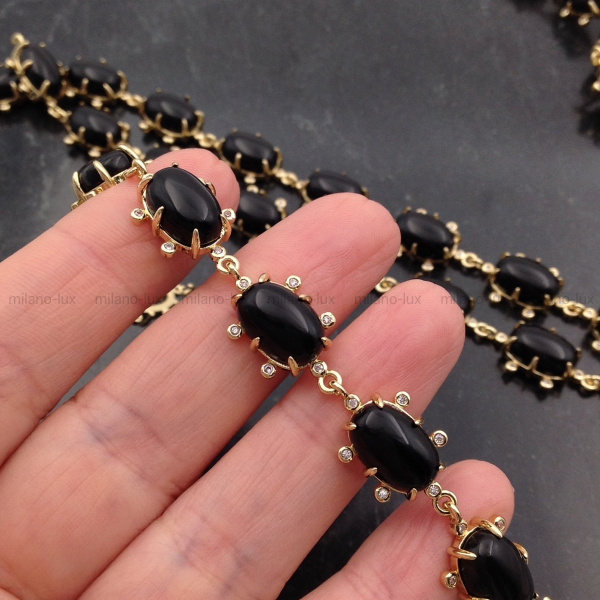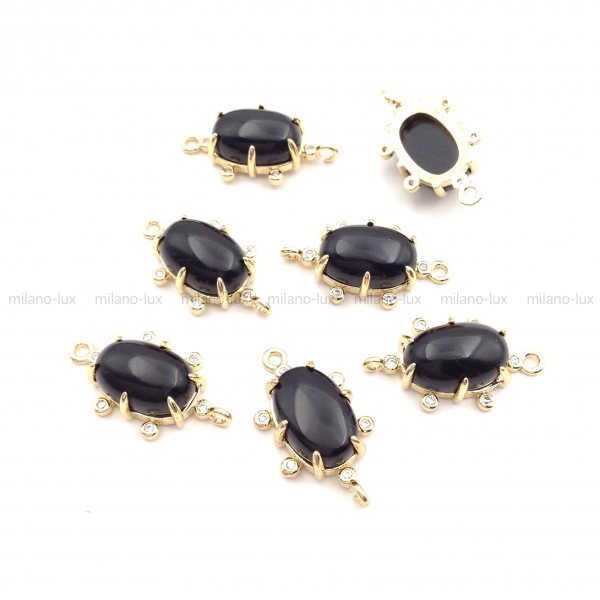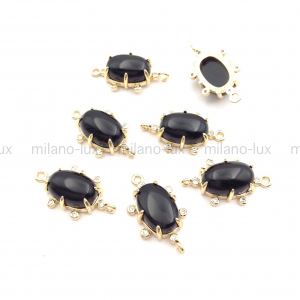 Коннектор из латуни с покрытием Золото 18К, вставка - фианиты и чёрный Агат, размер с учётом петель 21,3*11,4мм
