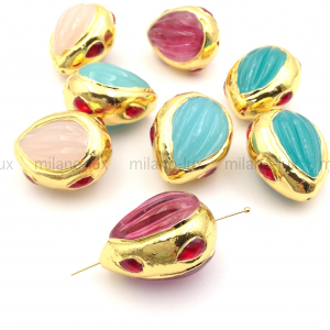 Крупная бусина Лэмворк в латуни, Розово-Малиновая