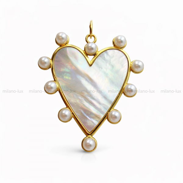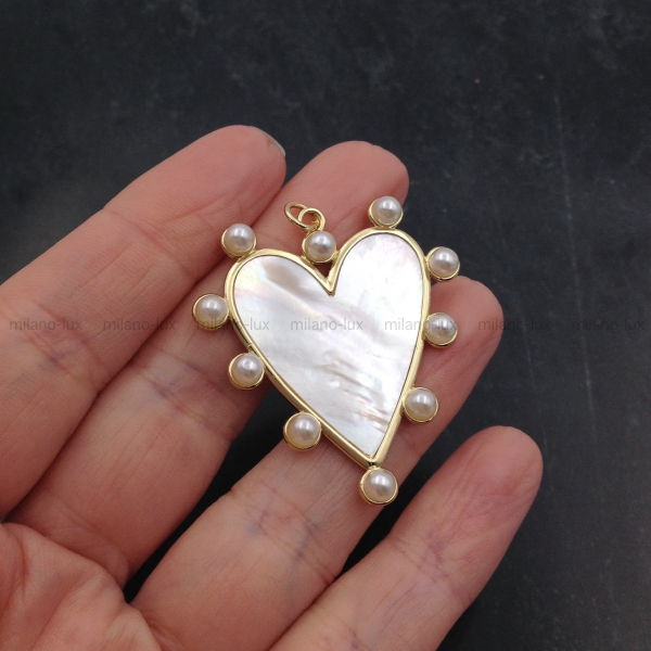 Крупная подвеска кулон Сердце из Перламутра; цвет золото