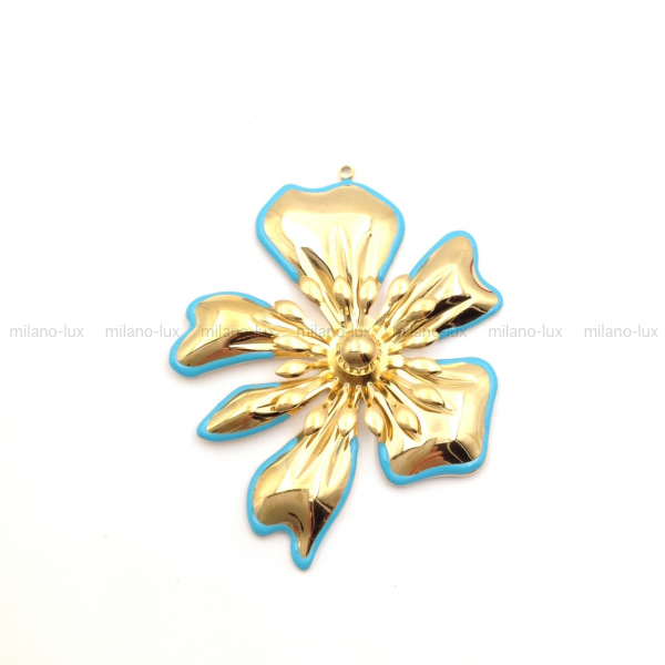 Крупная Подвеска Цветок с Голубой каймой из стали; цвет золото