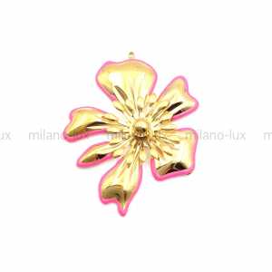 Крупная Подвеска Цветок с Розовой каймой из стали; цвет золото
