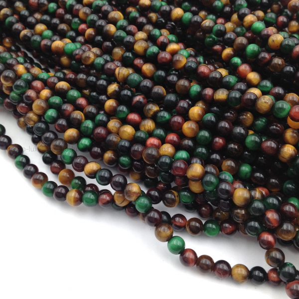 → Микс цветов Тигровый Глаз A Grade, шар 4.5мм; нить 38см