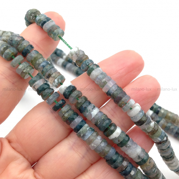 → Моховой Агат спейсер в ювелирной огранке 6*2мм; нить 18см