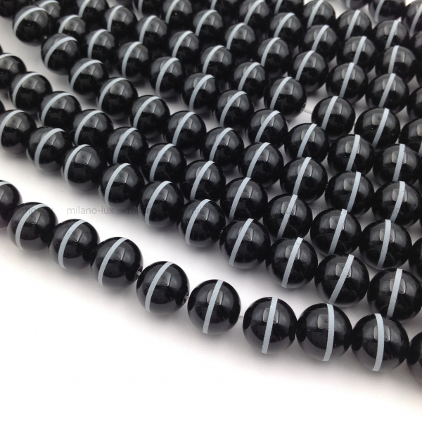 → Натуральный Чёрный Агат с белой полоской, размер 10мм; нить 37см