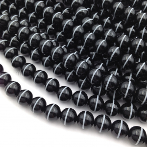 Натуральный Чёрный Агат с белой полоской, размер 8.5мм; нить 39см