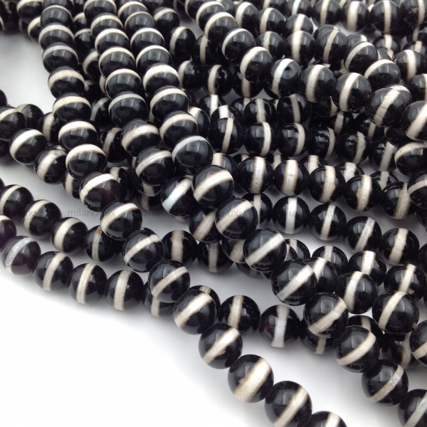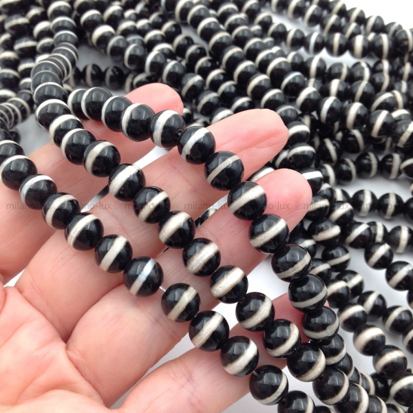 Натуральный Чёрный Агат с широкой полоской, размер 8мм; нить 37см