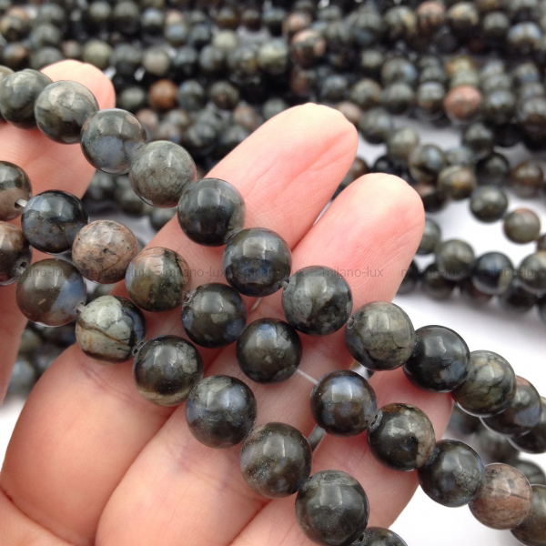 Бусины натурального Глаукофана, форма шар, размер 8-8,5мм, отверстие 0,8мм. Мелкие каверны, неровности и включения - не являются браком натурального камня.